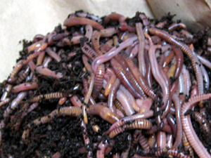 Now you need to find some worms. I've had good luck with mail ordering worms from a nearby source. You don't need many worms to start with. A pound is more than enough. I started with a half a pound which is a good size if you're not yet sure worm composting if for you. Besides, the worms multiply so eventually, if you keep them fed, you'll have more.